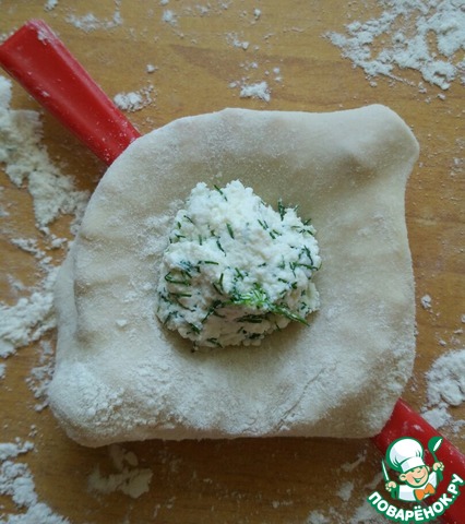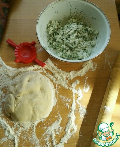 • Отломите небольшой кусок теста. Скалкой тонким слоем раскатайте лепешку, положите на нее порцию начинки размером с перепелиное яйцо. Закройте варенницу и плотно сожмите ее половины. лишнее тесто скопившееся по краям вареников пообрывайте.