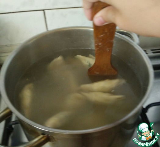 • В кастрюлю положите вареники и время от времени помешивайте. Варите их пока они не всплывут.