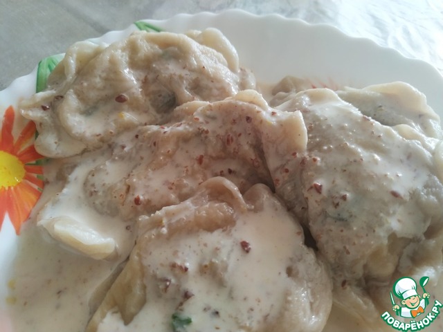 • А теперь налейте себе молочка, наложите сметаны, посыпьте вареники укропом и наслождайтесь. Приятного аппетита! Ваша Алиса!