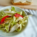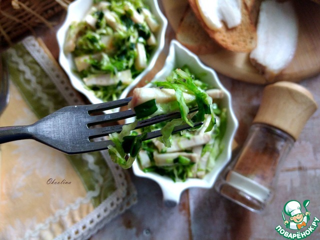 Сочный капустный салат из молодой капусты с салом. Салат можно сделать не только из молодой капусты, его можно сделать и осенью, а так же и зимой, используя сезонную капусту. Употребление свиного сала в небольших количествах благоприятно сказывается на всём организме человека, способствует укреплению иммунитета и улучшению деятельности мозга. Полезно, витаминно и вкусно.