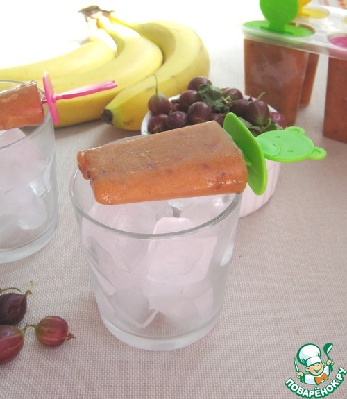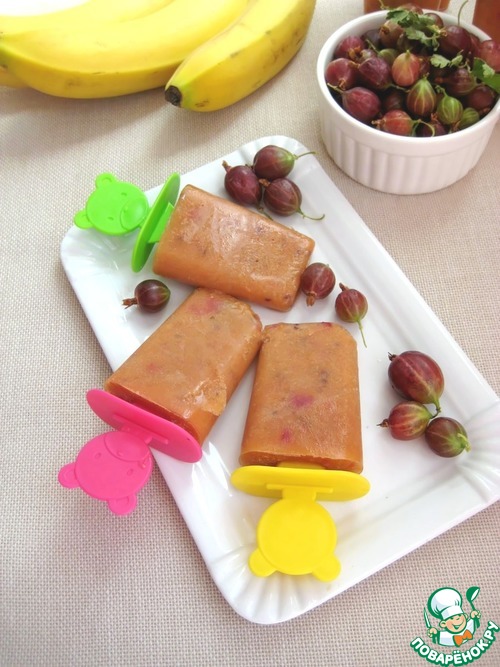 Освежающий, яркий фруктовый лед с абрикосами, крыжовником и бананом для жарких, летних дней!