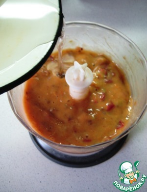 Влить остывший сахарный сироп к фруктовой смеси и еще раз взбить блендером.