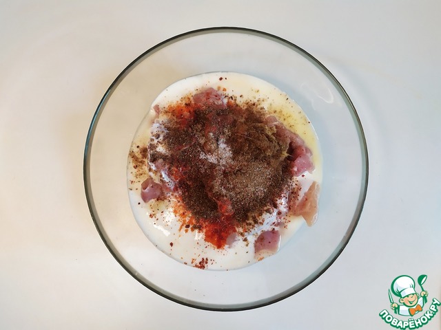 Смешаем всё для маринада и уберём в холодильник. Хотя бы на пол часа. А так можно и 8 часов мариновать.