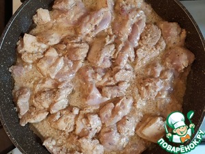 Разогреем масло, обжарим курицу со всех сторон, минут 5-6. И отложим её в сторону.