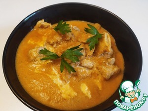 Хорошо сочетается с рисом. Так же можно добавить зелень и немного полить свежими сливками.