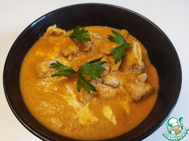 Мург макхани (или курица в масле) - индийское блюдо из курицы в томатном соусе и специях. С маслом, как явствует из названия. Рецепт совсем новый (что необычно для Индии) и был изобретён случайно в середине прошлого века. Но тогда он ещё оставался локальным событием и только через пару-тройку десятилетий начал своё путешествие по миру.