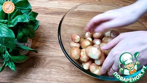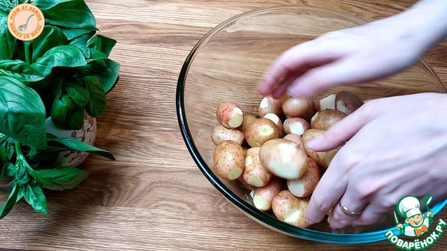Шаг 1 Нечищеный молодой картофель, лучше брать небольшой по размеру, промываем, вырезаем глазки