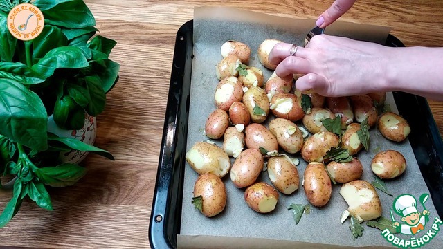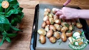 Шаг 4 Картофель прокалываю вилкой и ставлю в разогретую духовку на 180 градусов на 30-35 минут