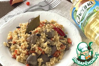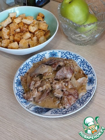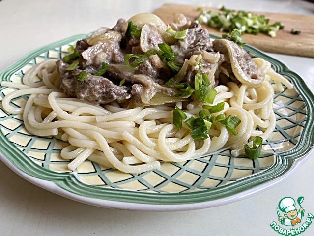 Поставить на огонь, довести до кипения, убрать огонь на минимум, тушить 7 -10 минут - не пересушить, тк печень уже обжареная!
