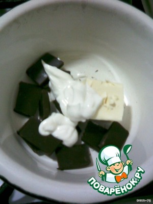 шоколад, масло и сметану растапливаем на маленьком огне -