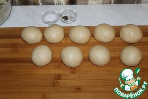 Делим на 9 равных частей. Подкатываем каждый кусочек.