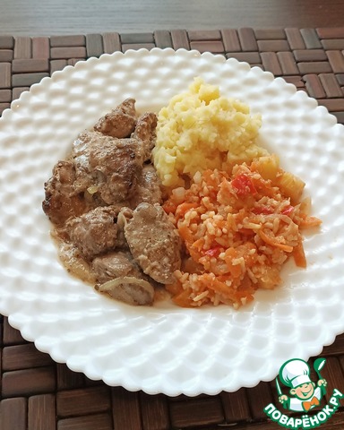 Вкусная м нежная печень! моё отступление: обваляла печень в муке перед обжаркой. Спасибо за вкусный обед