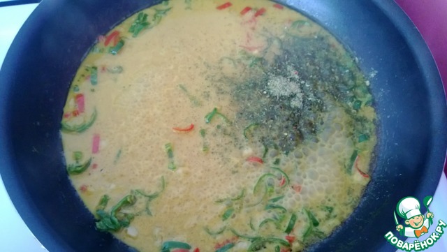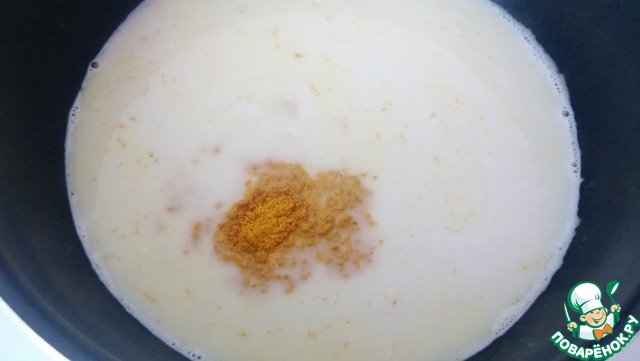Влейте кокосовое молоко с карри. Добавьте приправу "Gallina Blanca".