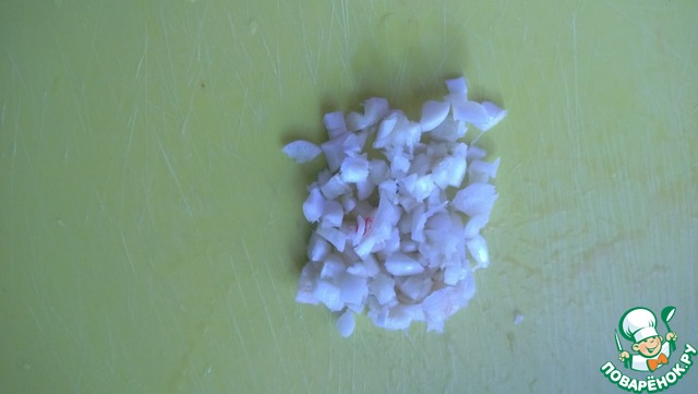 Очистите чеснок, раздавите и мелко его порубите.