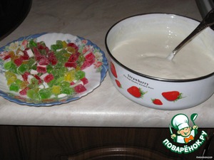 Бисквитный торт со сметанным кремом и мармеладом. Очень нежный получается и симпатичный