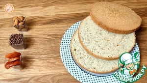 Ореховый бисквит, с нежной прослойкой из сливочного суфле с добавлением в него чернослива и кураги, станет украшением любого праздничного стола. Торт хорошо пропитан сиропом и очень сочный. В этом десерте не используется масло, но вкус этого торта просто восхитителен