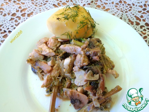Рецепт «Жаркое с шампиньонами, кабачком и папоротником»: