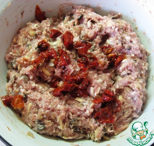 Сытный, ароматный мясной хлебец с двумя видами сыра, шампиньонами и вялеными томатами!