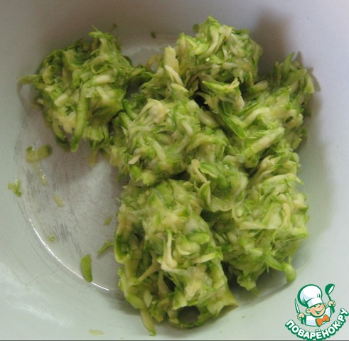 Кабачки вымыть, обсушить, натереть на терке, присолить и дать постоять 5-7 минут.