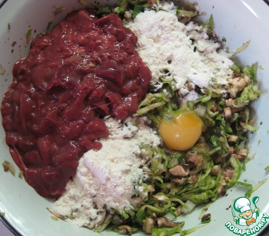 Рецепт «Кабачковые оладьи с грибами и печенью»: