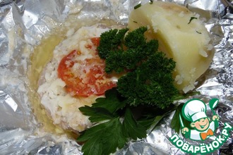 Вынуть и уложить на обжаренную овощную смесь. Накрыть крышкой и держать на малом огне.