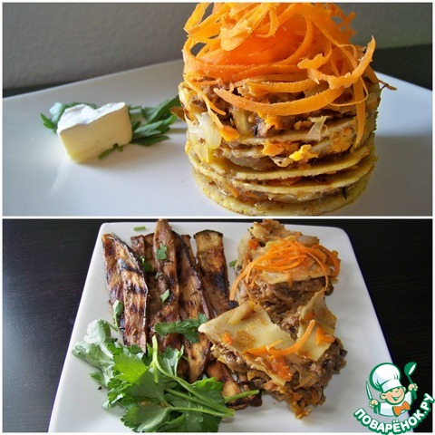 Нежный, ароматный закусочный торт с баклажанными блинчиками и начинкой из овощей и плавленого сыра!