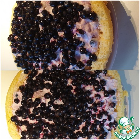 Получившуюся массу выложить на бисквит, разровнять. Сверху посыпать оставшимися ягодами. Убрать в холодильник на 30 минут.