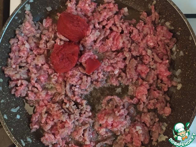 На него фарш и на фарш снова сыр.