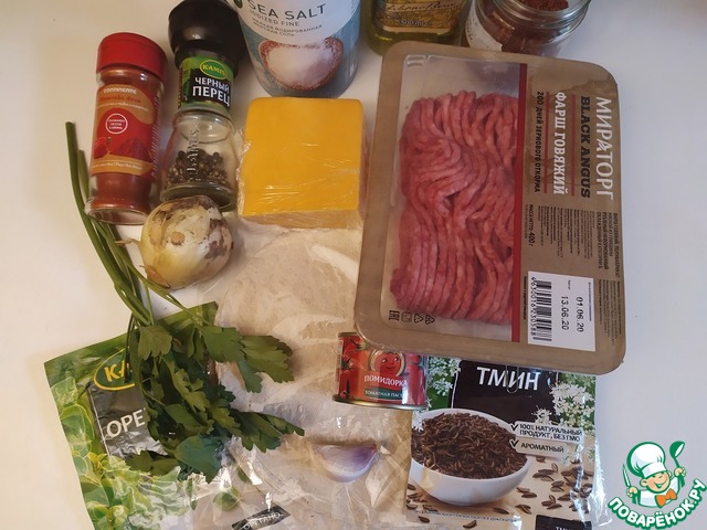Ингредиенты для «Кесадильи с говяжим фаршом и гуакамоле»: