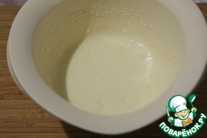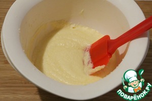 Не переставая взбивать, добавлять по одному яйца.