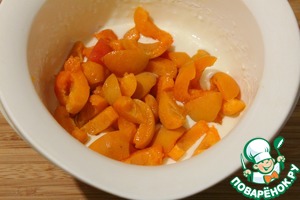 Добавить абрикосы в начинку и перемешать. -
