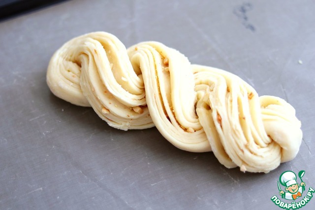 Рецепт «Творожная плетёнка с сахаром и орехами»: