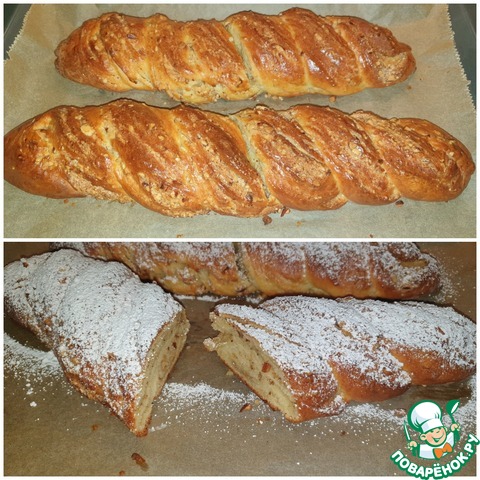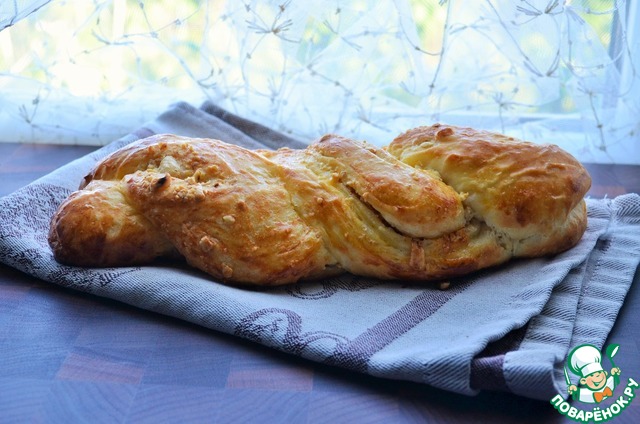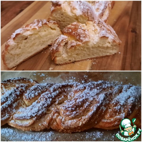 Творожная плетёнка с сахаром и орехами