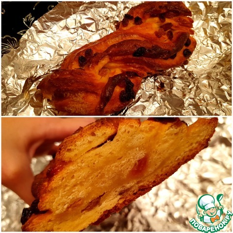 Затем оформить в форме жгутика. Смазать плетенку взбитым яйцом и отправить в разогретую до t200С духовку, выпекать до румяной корочки.