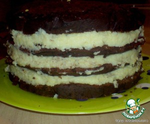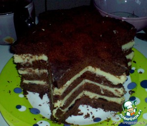 Верхний корж кремом не мажем, но соком пропитываем. Убираем торт в холодильник на ночь.