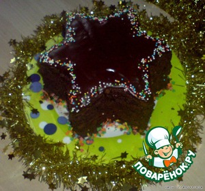 Можно оставить круглый торт, но я решила сделать звездочку. Для этого сначала рисуем звездочку на пергаменте, вырезаем ее, кладем на торт и аккуратно вырезаем. Главное, чтобы был острый нож.