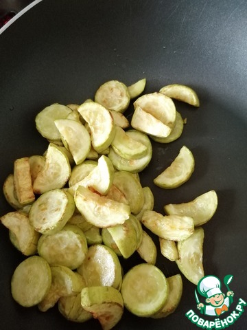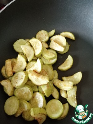 Нарезать кабачки полу кольцами и обжарить порционно.