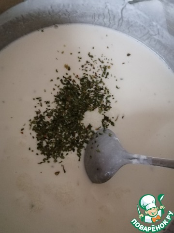 Смешать йогурт с мукой, добавить теплой воды и при интенсивном помешивании дать закипеть. Добавить мяту по вкусу.