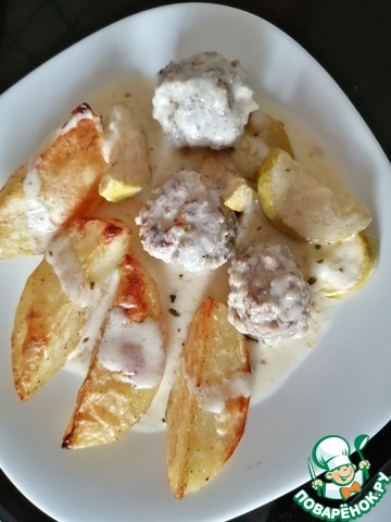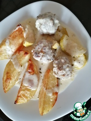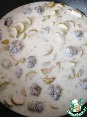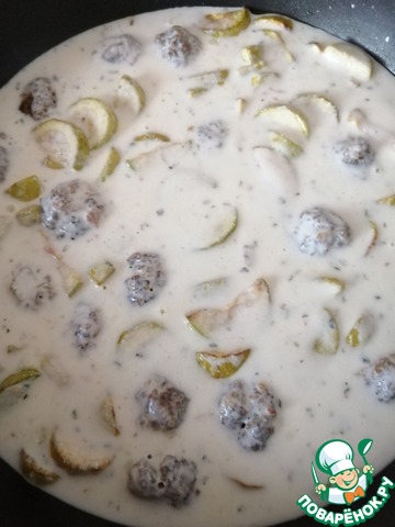 Рецепт «Фрикадельки и кабачки под йогуртовым соусом»: