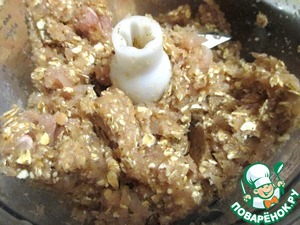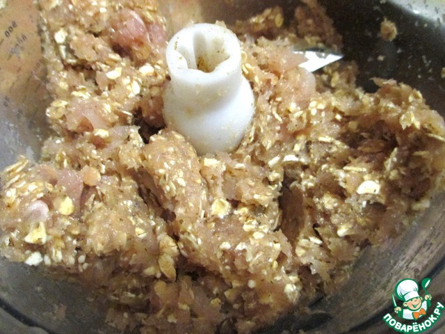 Филе, хлопья и специи измельчить в блендере. Получится очень сухая масса, это нормально, хлопья всю влагу забирают из филе.