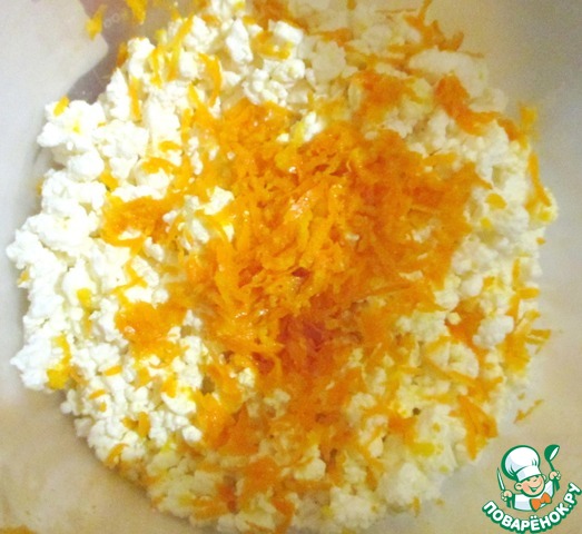 В творог натереть цедру с апельсина.
