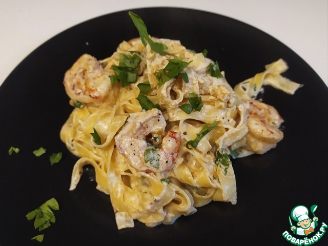 Фотографии «Фетучини Альфредо с креветками» от приготовивших (1)