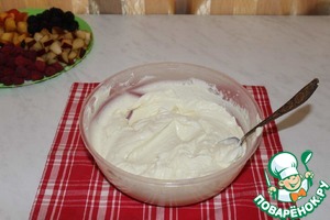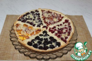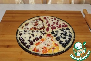 Выкладываем фрукты и ягоды. Сверху посыпаем остальной крошкой.