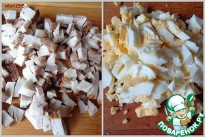 Мясо и яйцо порезать кубиком.