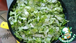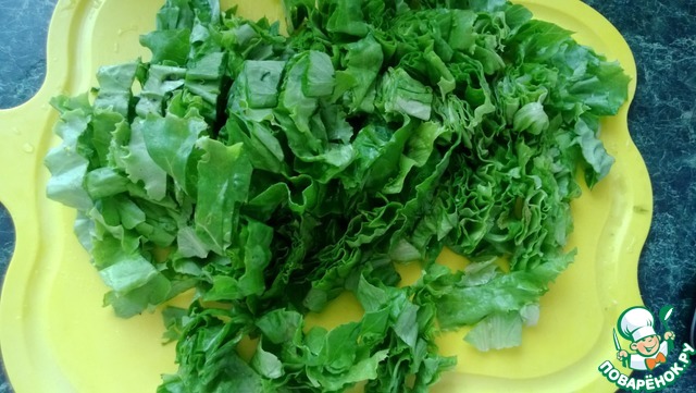 А тем временем займемся приготовлением начинки... Моем, обсушиваем и нарезаем листья салата.