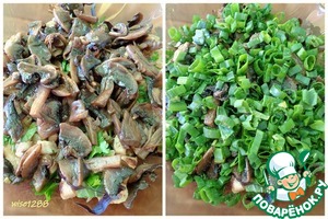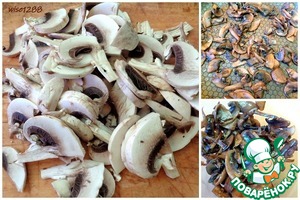 Шампиньоны нарезать на полупластинки, посолить и пожарить на растительном масле до готовности.