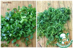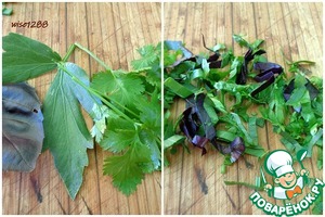 Ароматную зелень: базилик, любисток, кинзу нарезать мелко.