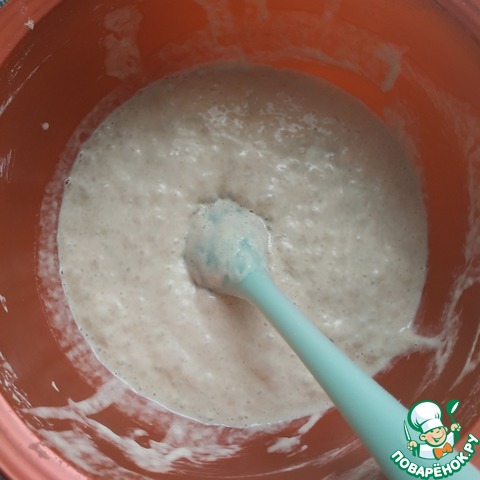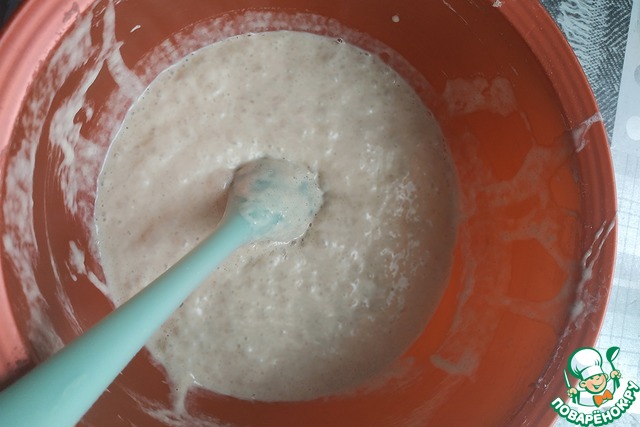 Емкость с тестом накрыть крышкой и оставить при комнатной температуре бродить на 4 часа.