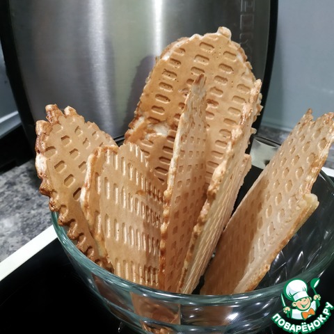 Дорогие поварята, накануне Успенского поста, хочу поделиться с вами проверенным рецептом постного, бюджетного, низкокалорийного десерта. Вафельки замечательно сочетаются не только с мороженым, но и со спелыми фруктами, медом и джемом.