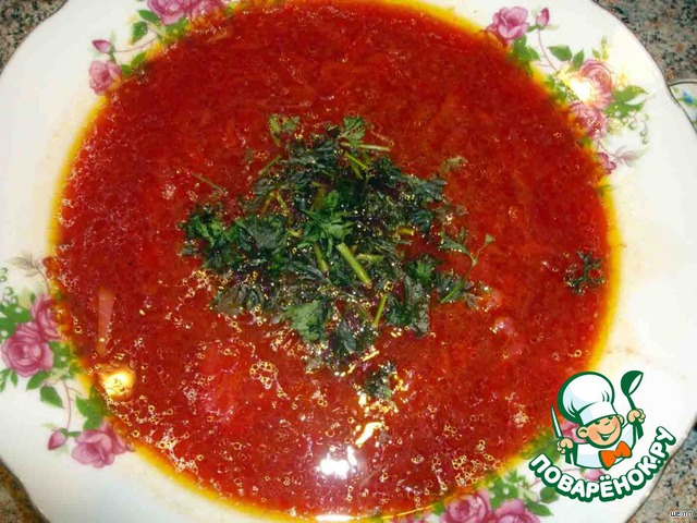 Нашла в дебрях инета такой вот рецептик борща, приготовила - борщ просто обалденный!!! На сайте есть такой рецепт от кулинара Девуся http://www.povarenok .ru/recipes/show/150 32/. Но как-то народ его не оценил, стало мне обидно за такой хороший рецепт!!! потому что борщик ну, очень вкусный. Поэтому решила показать Вам всем его еще разик. Жалко супчик)))